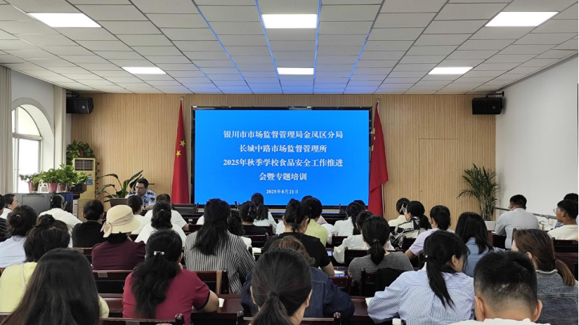 新学期到临之际,回族自治区银川市市场监管局金凤区长城中市场监管所组织辖区45家学校、长儿园的食堂担任人及食物平安办理员共90余人,召开秋季学校食物平安工做推进会暨专题培训。培训旨正在强化校园食物平安从体义务认识、提拔办理程度,食物平安风险,保障师生饮食平安。